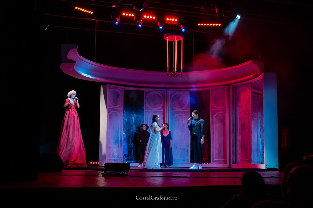 Decorul minimalist al Andreei Săndulescu, creat din panouri mobile ce alcătuiesc diferite spații imaginare – de la reședințele familiilor înstărite la săli de bal –, contribuie la componenta imaginativă a spectacolului. Nimic nu e real – totul e convenție, totul trebuie imaginat. Iar costumele realizate de Alexandra Boerescu permit schimbări rapide și spectaculoase.