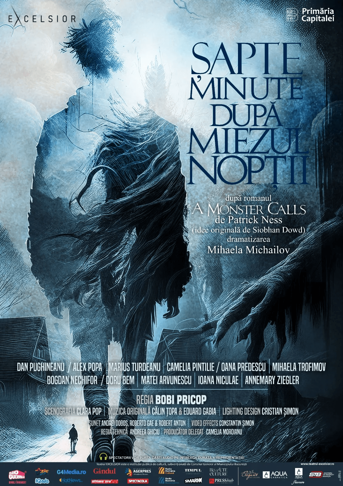 Teatrul EXCELSIOR, singurul teatru din București dedicat adolescenților și tinerilor adulți, începe anul 2025 în forță, cu premiera spectacolului „Șapte minute după miezul nopții (A Monster Calls)”, în regia lui Bobi Pricop, scenografia realizată de Clara Pop și muzica originală semnată de Eduard Gabia & Călin Țopa. Dramatizarea impresionantă a romanului lui Patrick Ness, dupăContinueContinue reading “Bobi Pricop se întoarce la Teatrul Excelsior din București cu un spectacol imersiv dedicat adolescenților – Șapte minute după miezul nopții (A Monster Calls)”